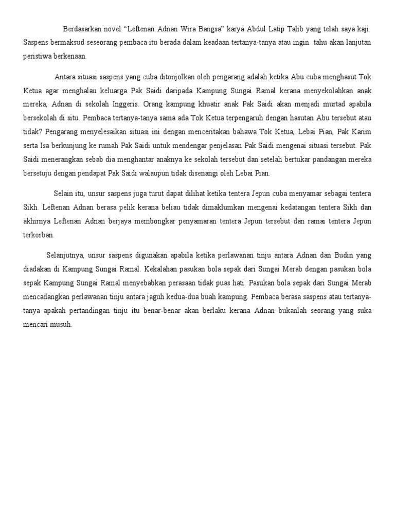 Contoh Teknik Plot Saspens Dalam Novel Leftenan Adnan